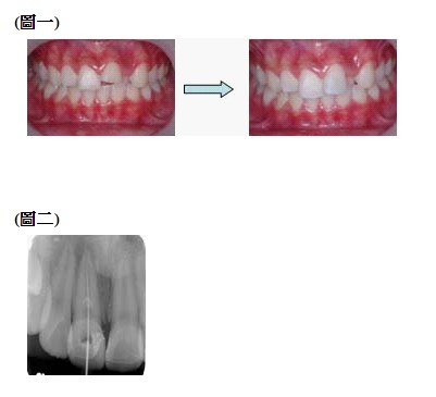 如曝露一點點時,只需摘除牙冠部份的牙髓組織即可(圖一)。