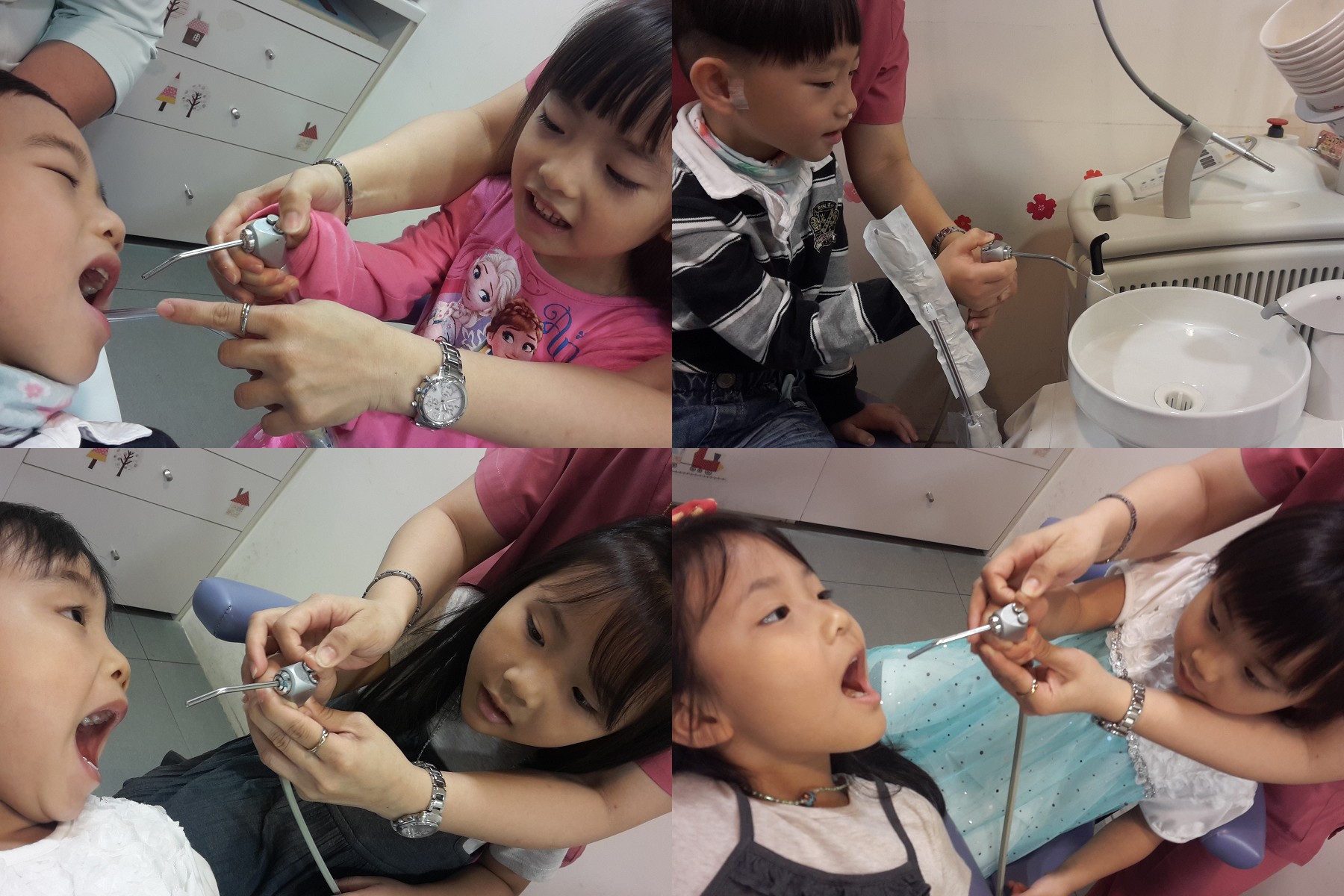 只要讓小朋友從體驗遊戲中了解平常牙醫叔叔阿姨的工作,就不再只有害怕,從此建立快樂的看牙經驗