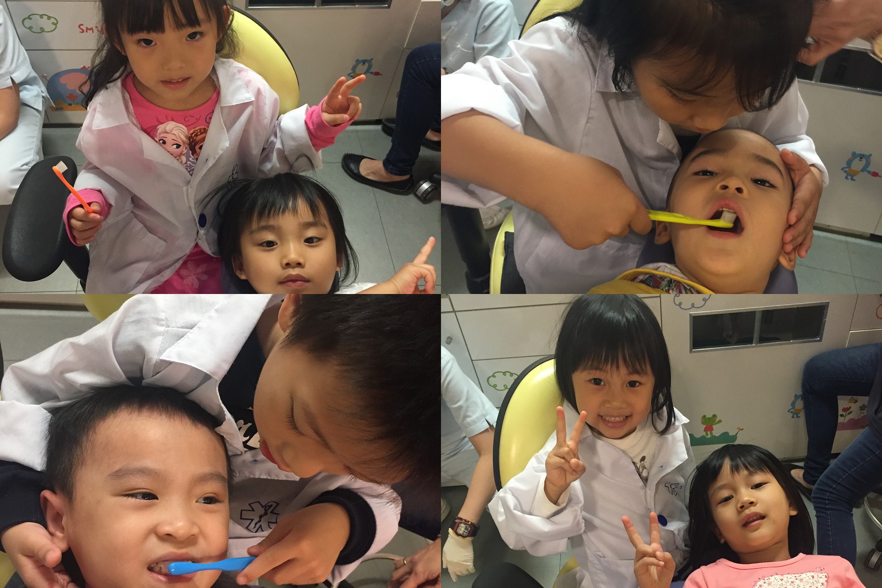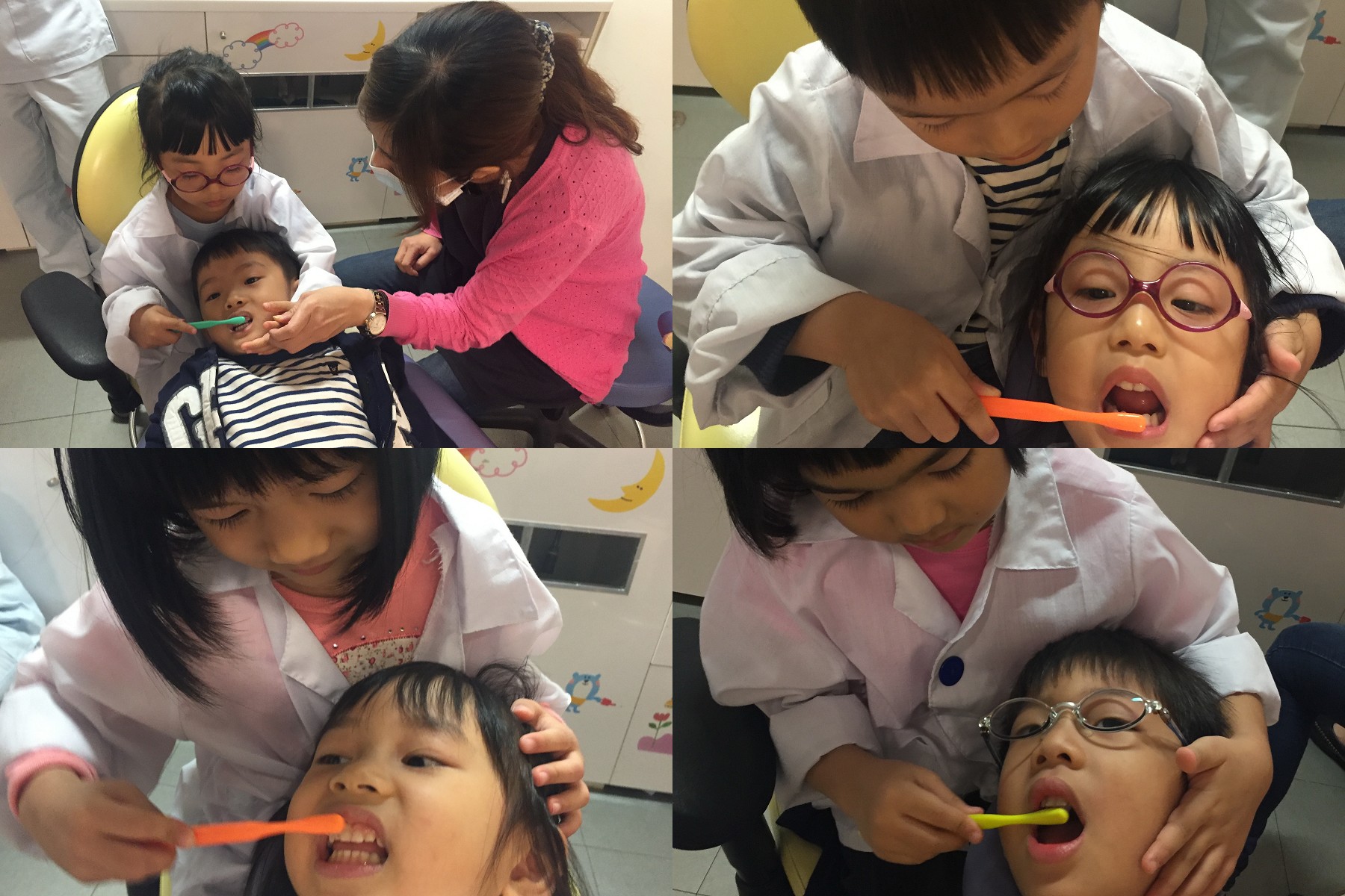 小小牙醫們穿上醫師袍,開始進行