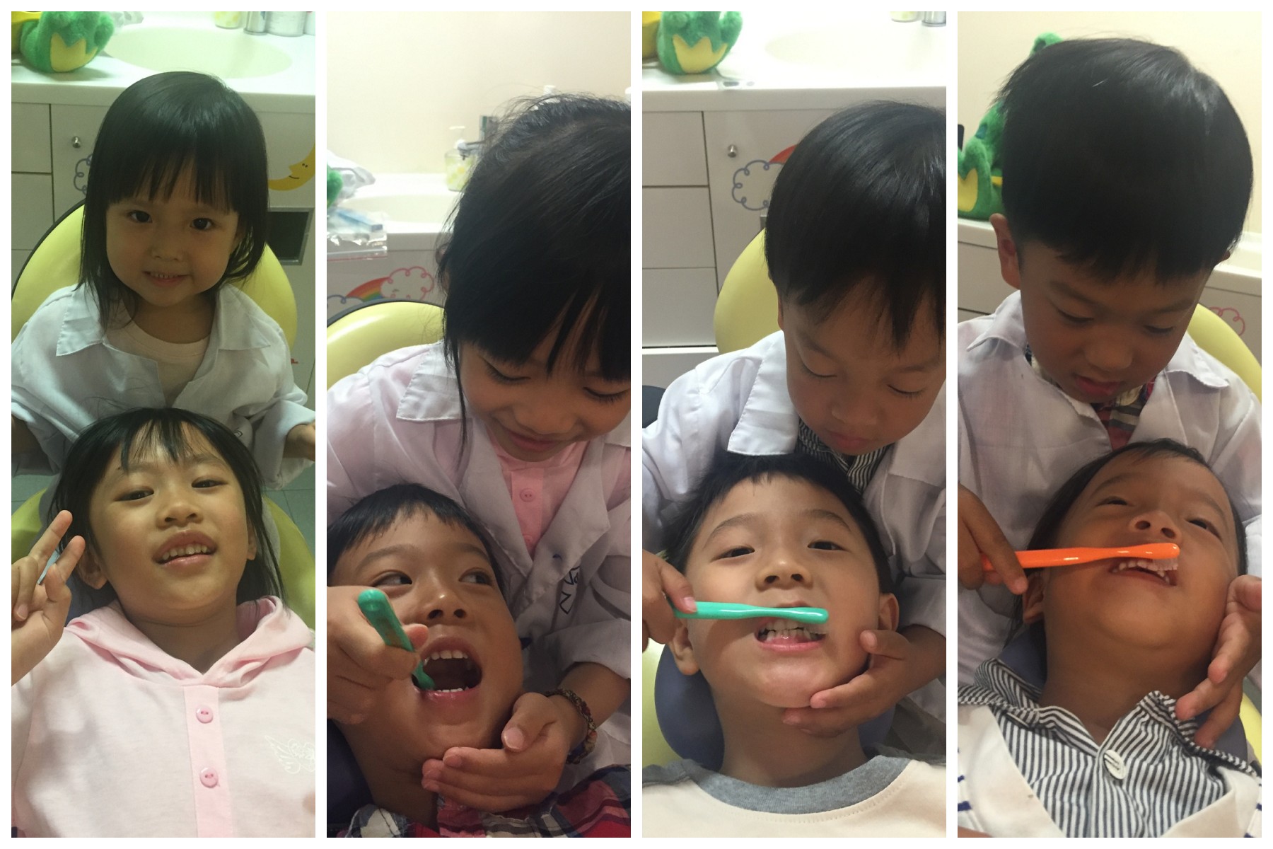 小小牙醫們互相幫對方檢查牙齒