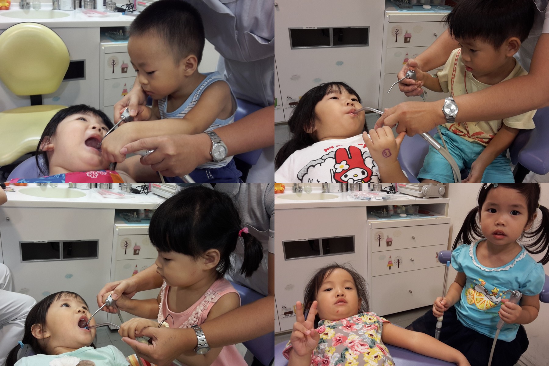 只要讓小朋友從體驗遊戲中了解平常牙醫叔叔阿姨的工作,就不再只有害怕,從此建立快樂的看牙經驗