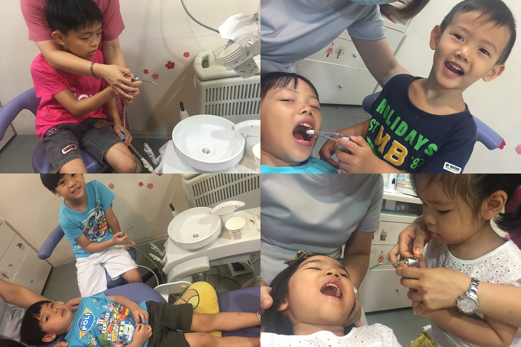 只要讓小朋友從體驗遊戲中了解平常牙醫叔叔阿姨的工作,就不再只有害怕,從此建立快樂的看牙經驗