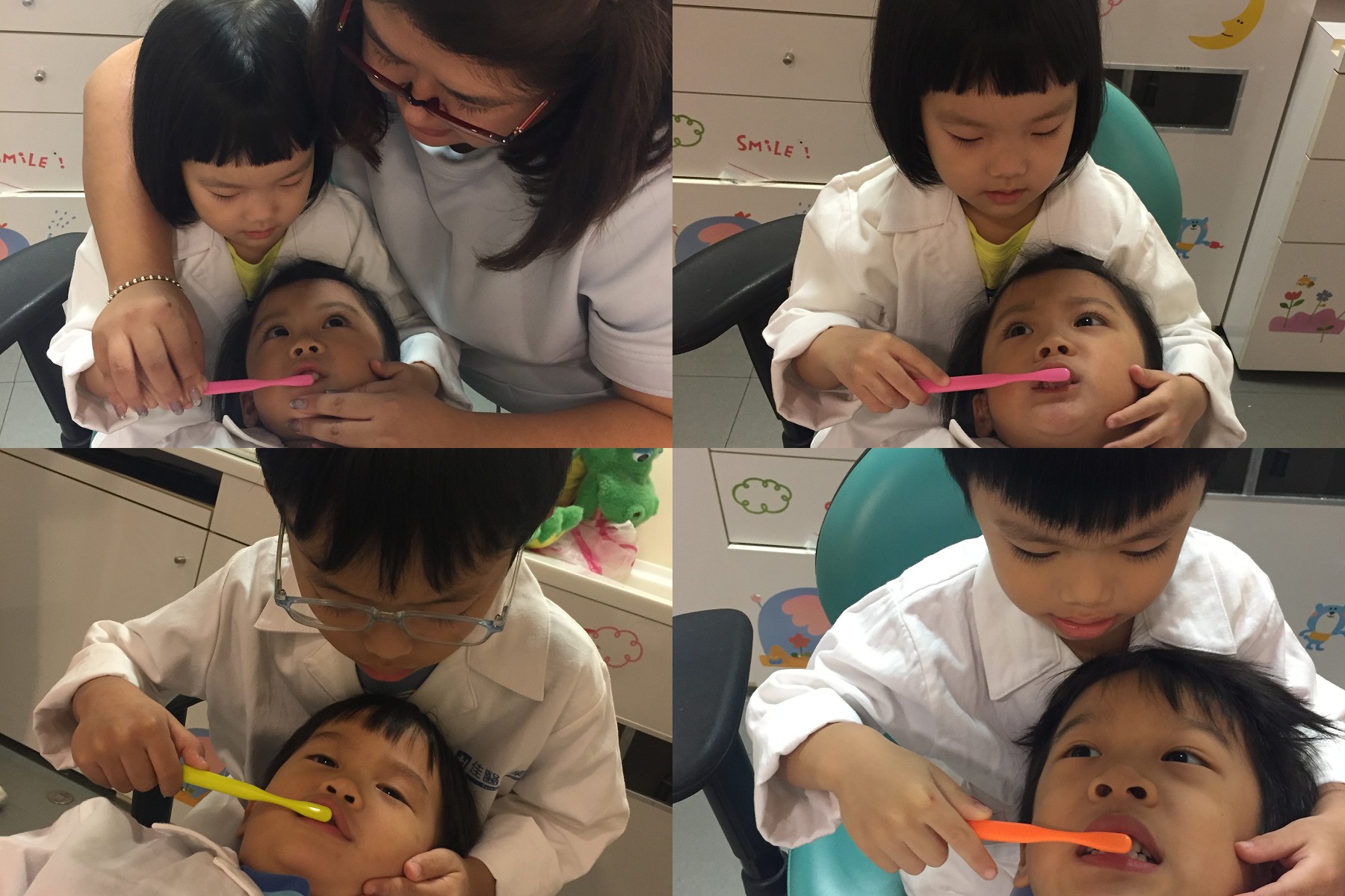 活動中,我們會教小小牙醫們正確的刷牙方式,認識看牙的小工具