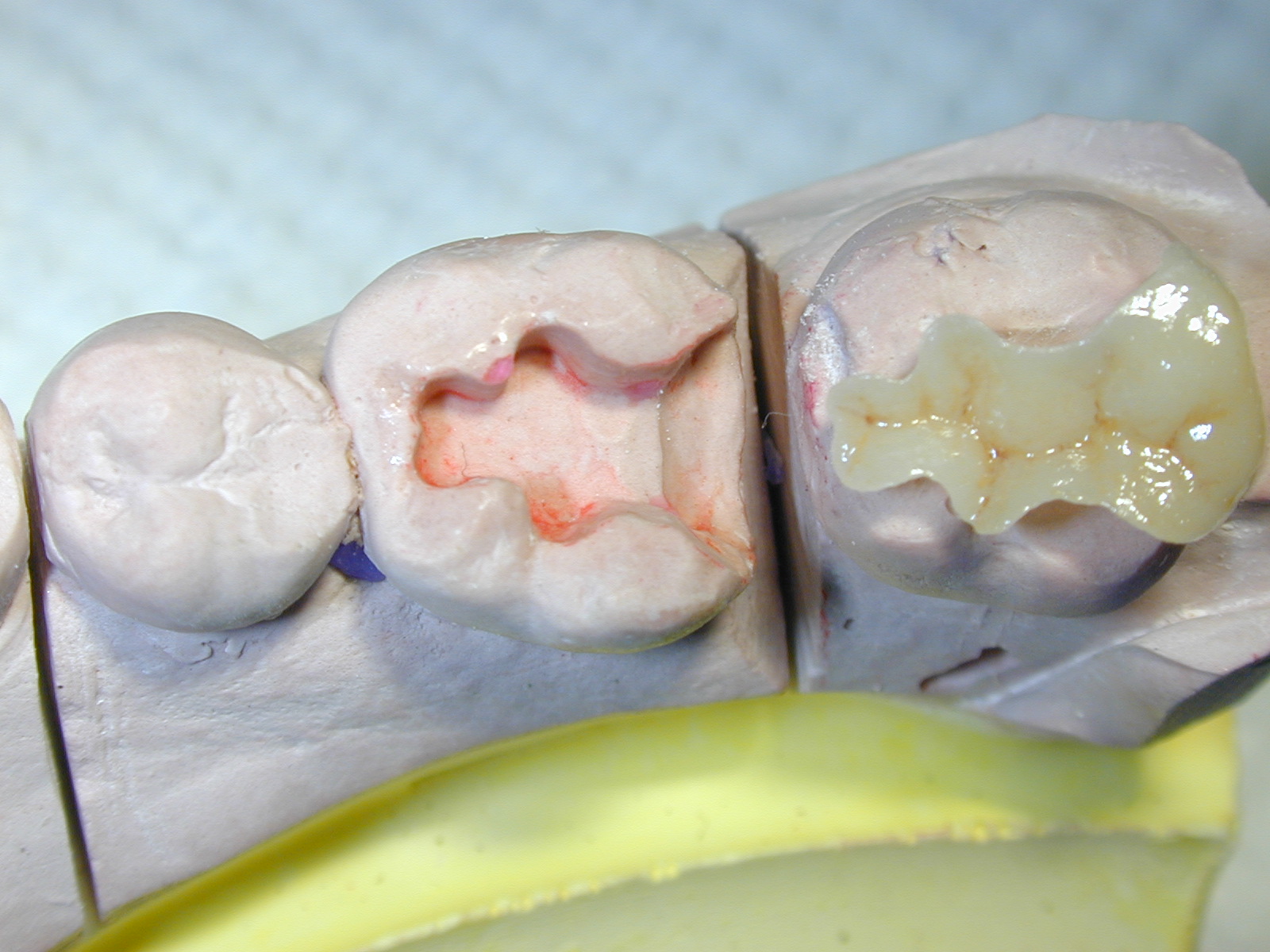 鑄造瓷牙嵌體的發展,在於彌補銀粉美觀上的不足,又同時能承受較大咬合力,更重要的是它的物理性質和牙釉質相近,使得它和牙齒的相容性很高。加上樹脂黏合劑的結合,幾乎可達到無接縫無空隙的理想效果。