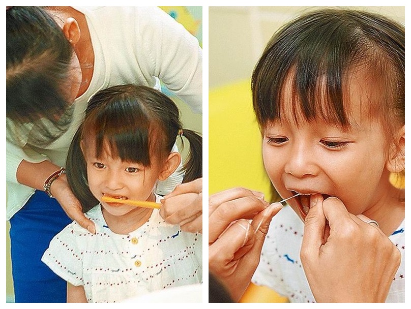 家長可在每天早晚協助幼童刷牙。進食完可用牙線清除乳牙縫隙殘渣。